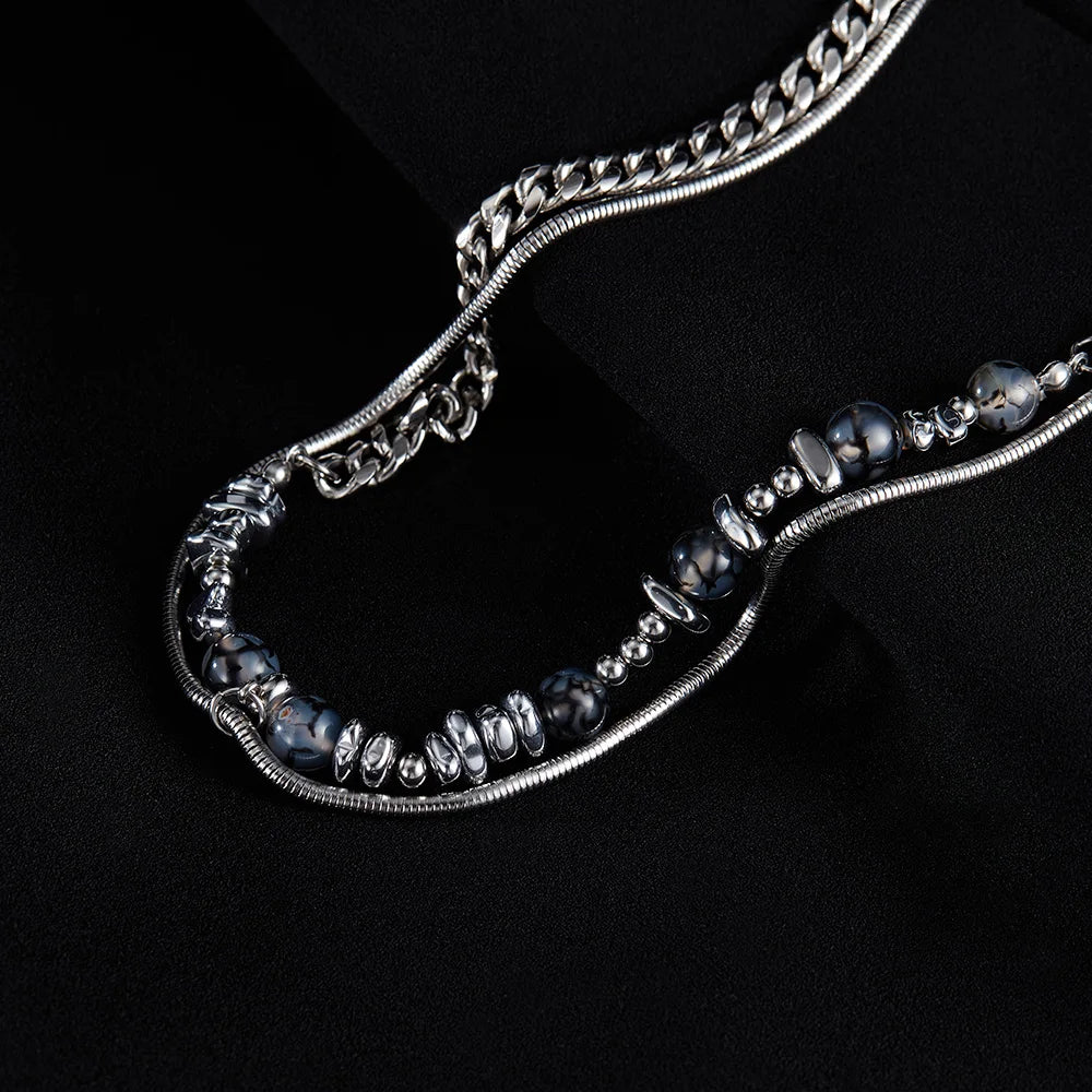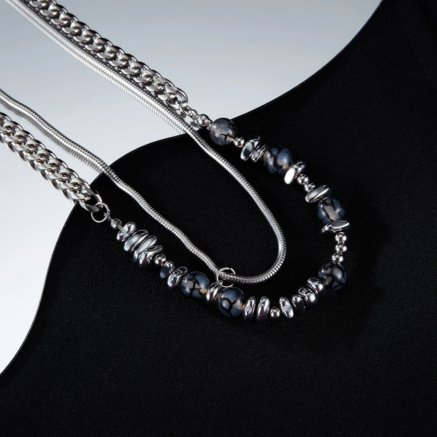 Subtle yet striking, this Men’s Minimalist Double-Layer Necklace combines black agate natural stone beads with a bold stainless steel Cuban chain to create a clean, structured look. Inspired by cold-tone aesthetics and streetwear minimalism, it’s perfect for men who prefer quiet confidence over loud flair.