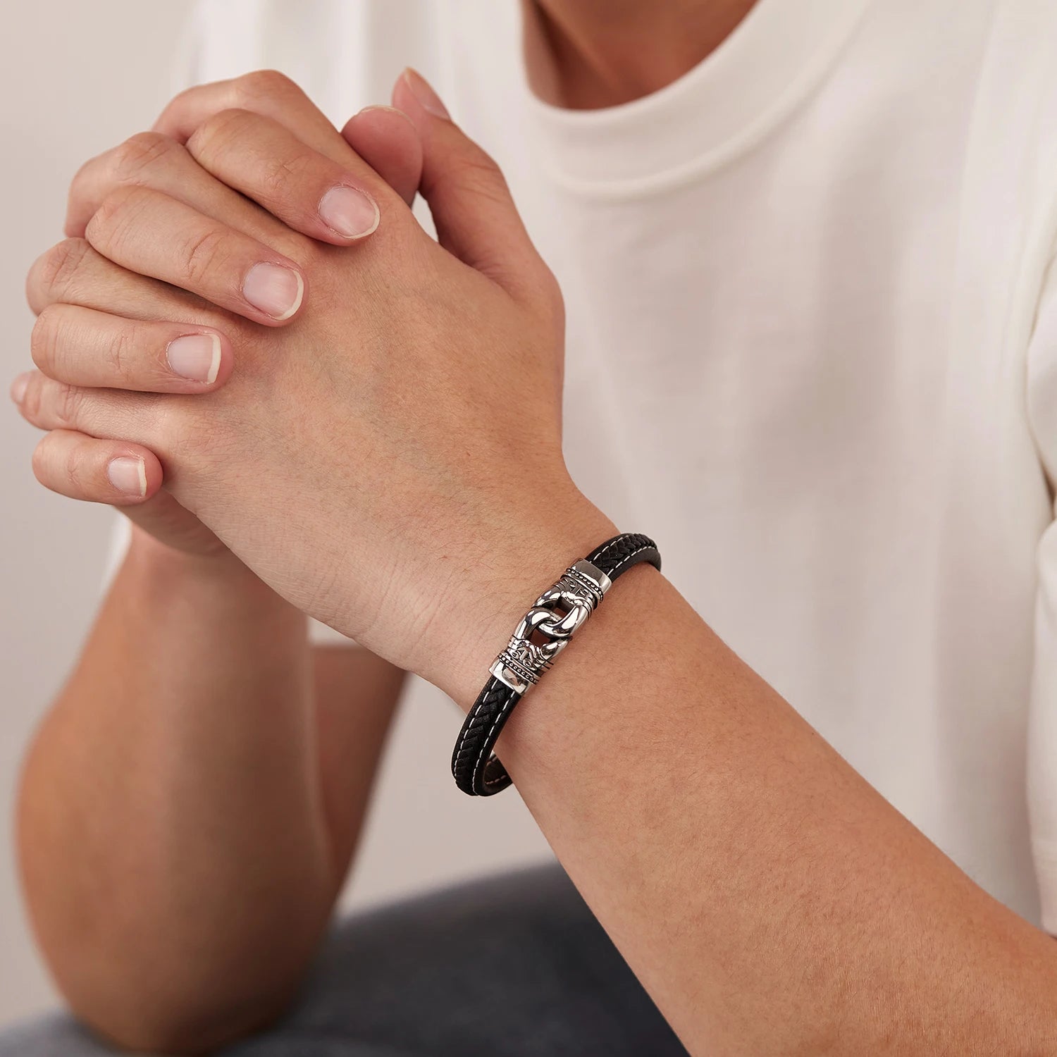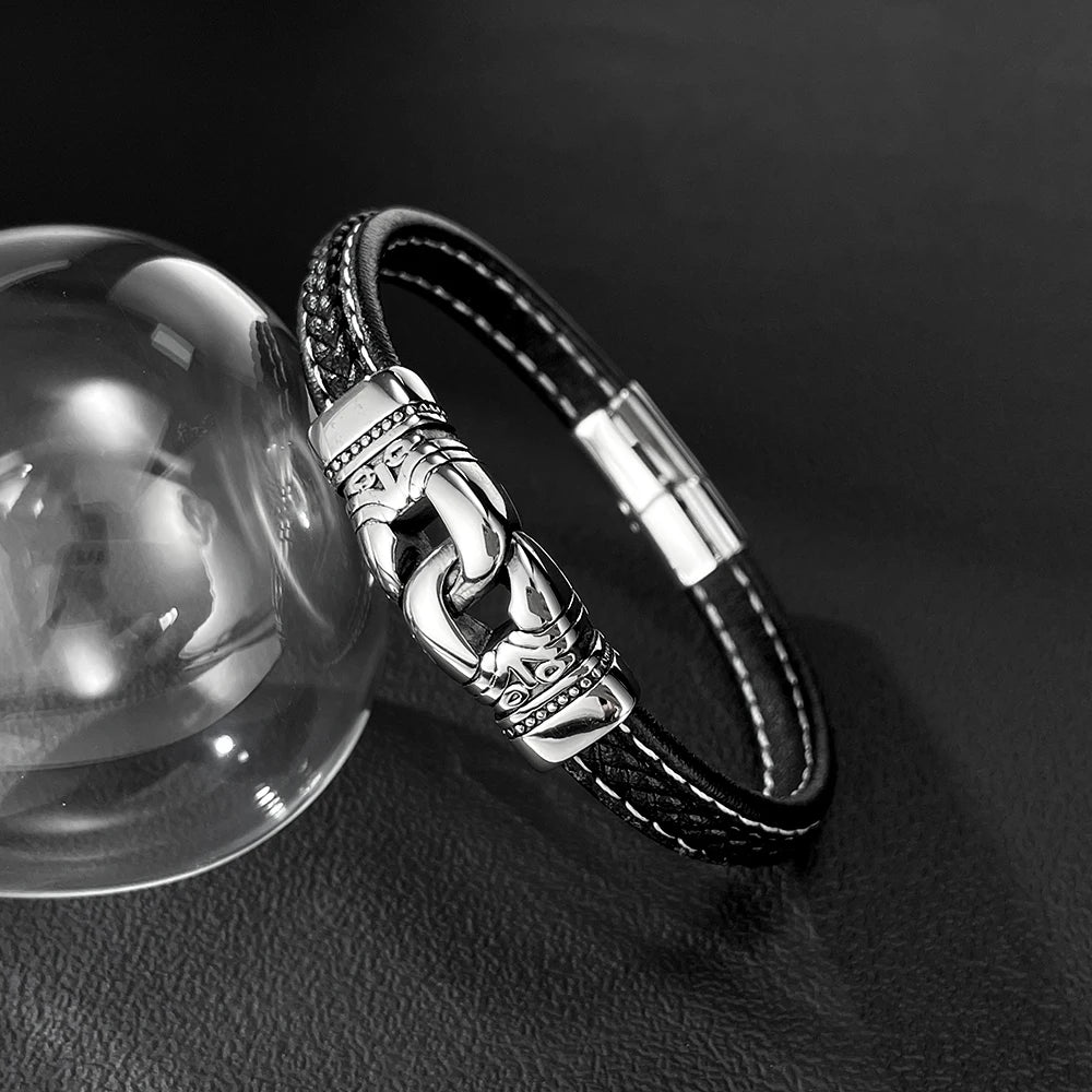 This European punk-inspired men’s leather bracelet features durable braided leather and bold stainless + titanium steel detailing, creating a perfect blend of toughness and style. Designed for men who love street fashion, rock elements, and a hint of rebellion, this bracelet delivers a confident edge with every wear.