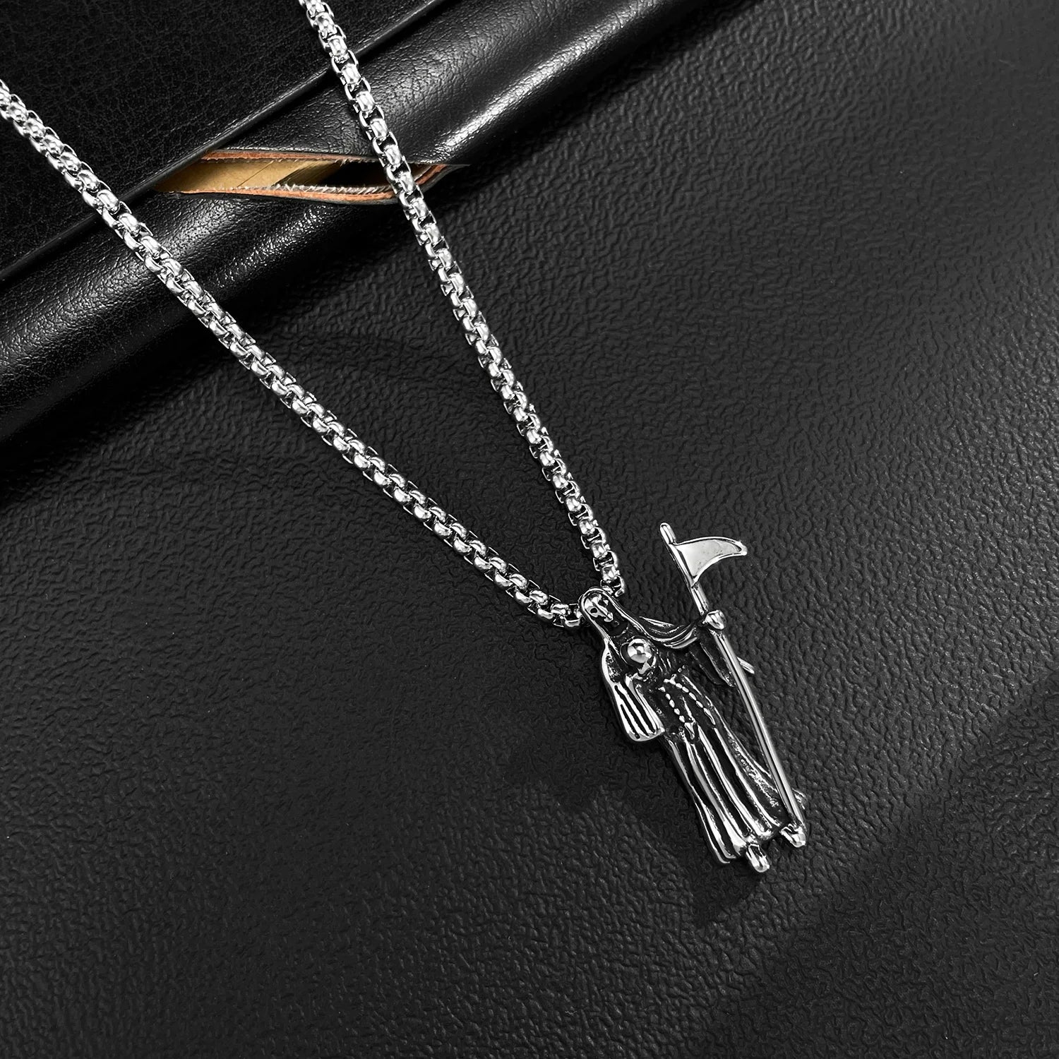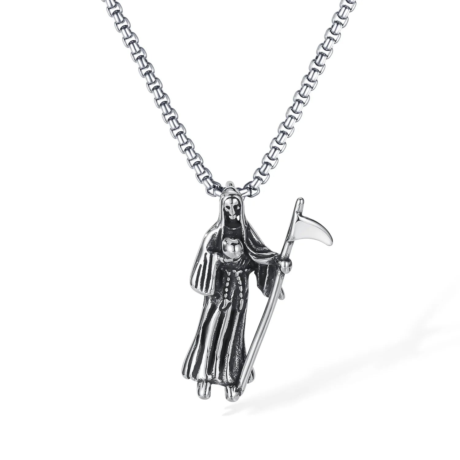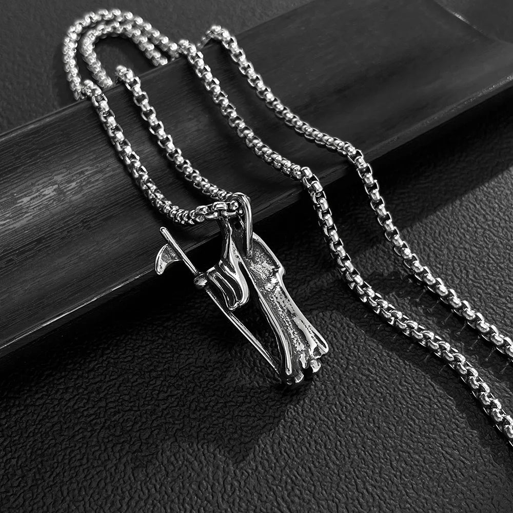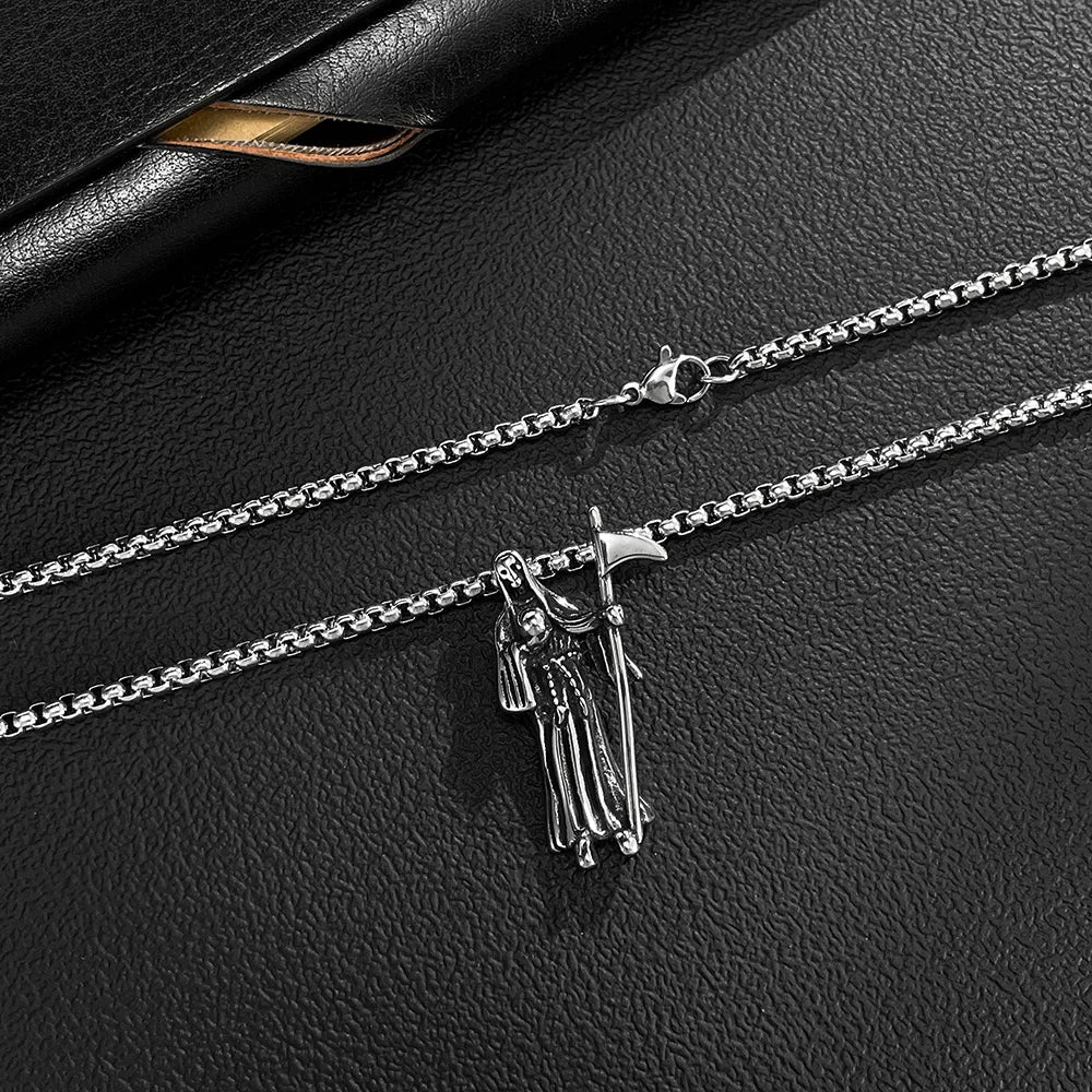 Men’s Reaper Scythe Pendant Necklace – Retro Punk Stainless Steel Grim Reaper Charm Chain
