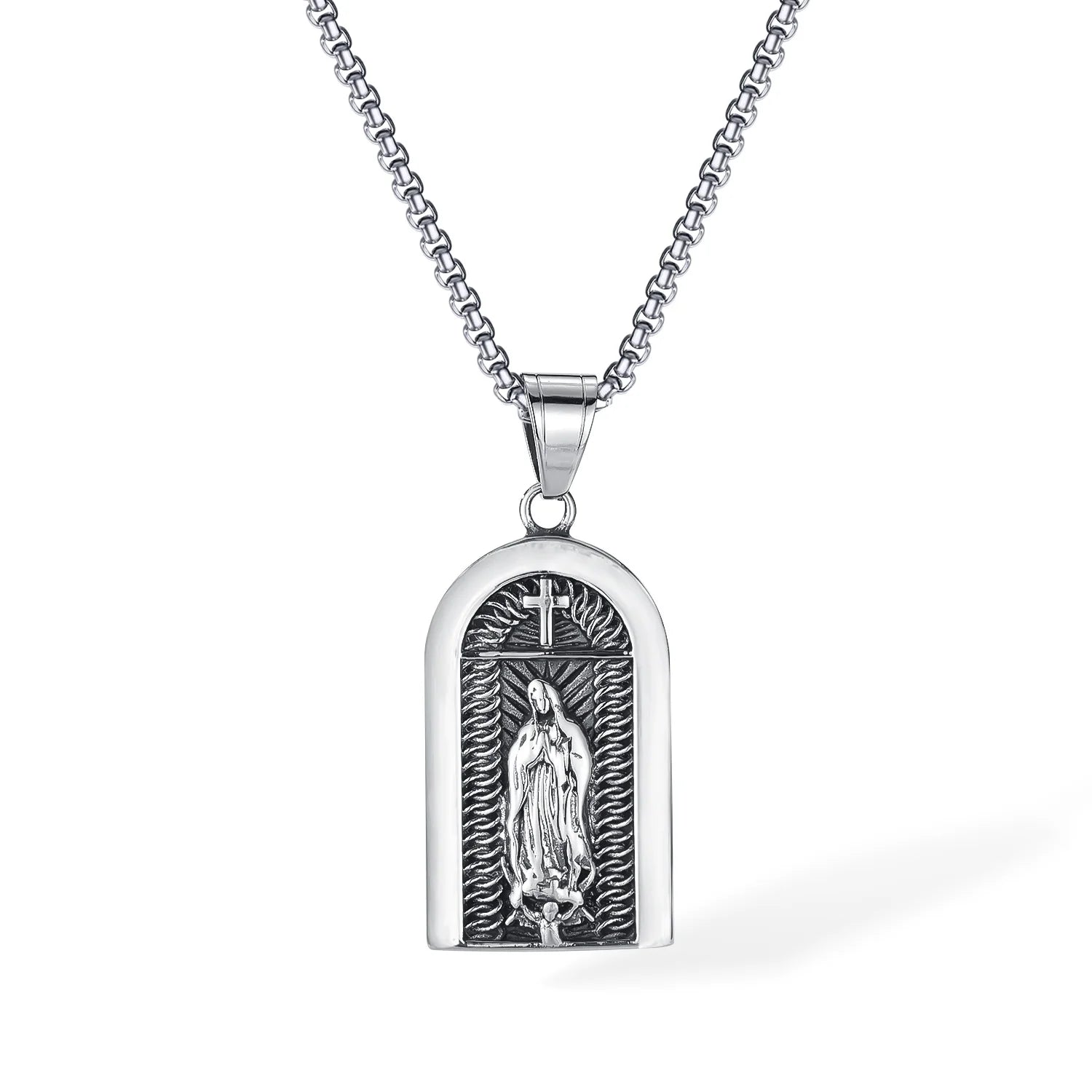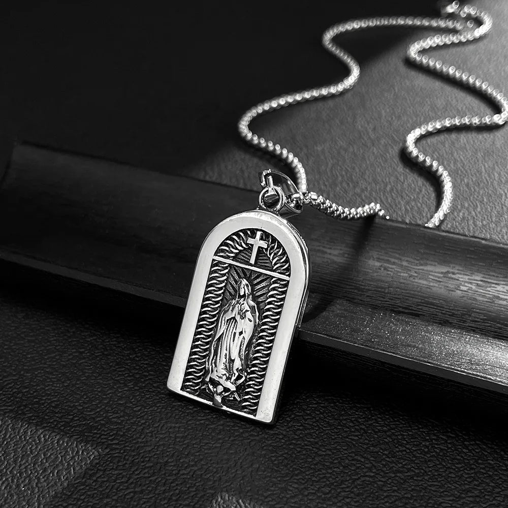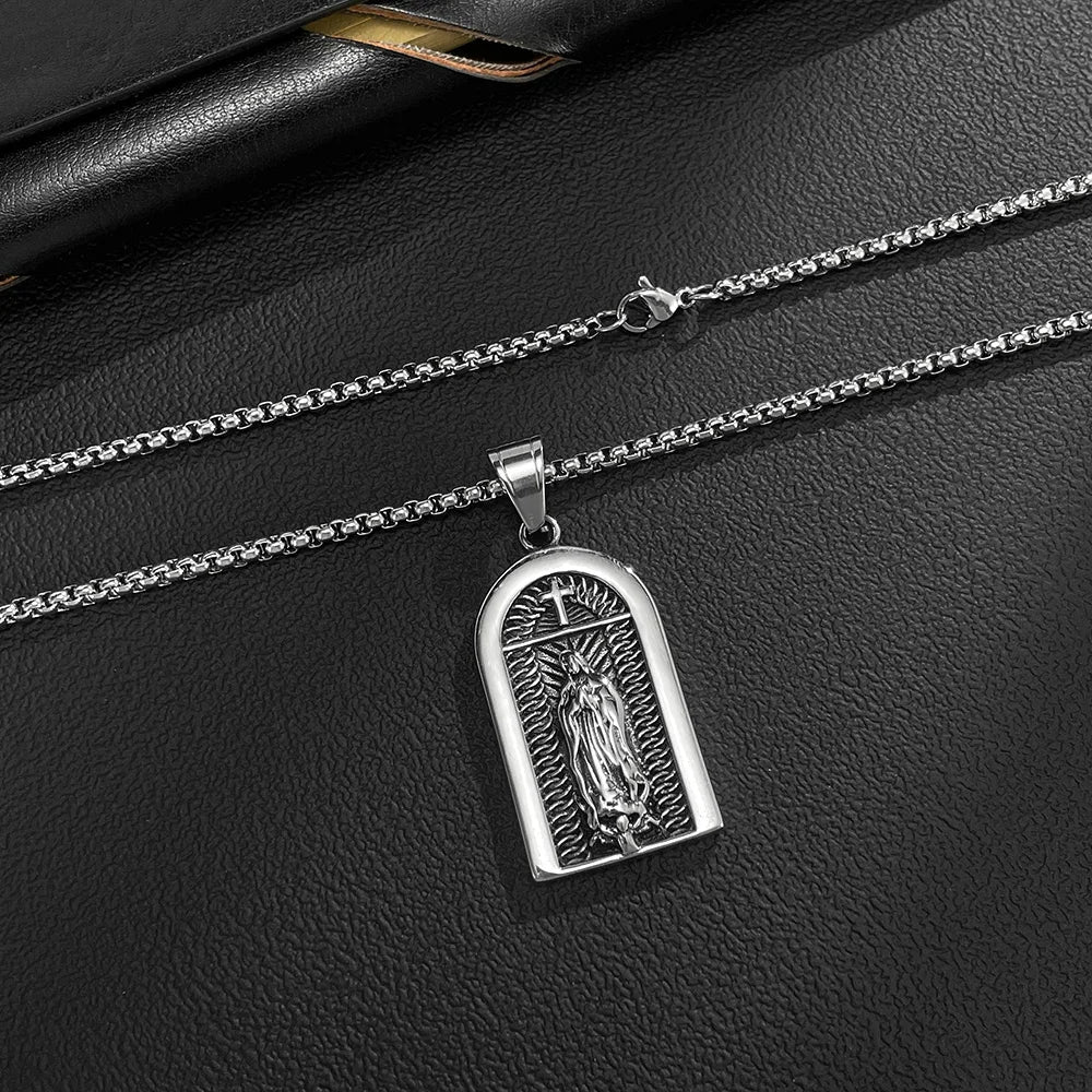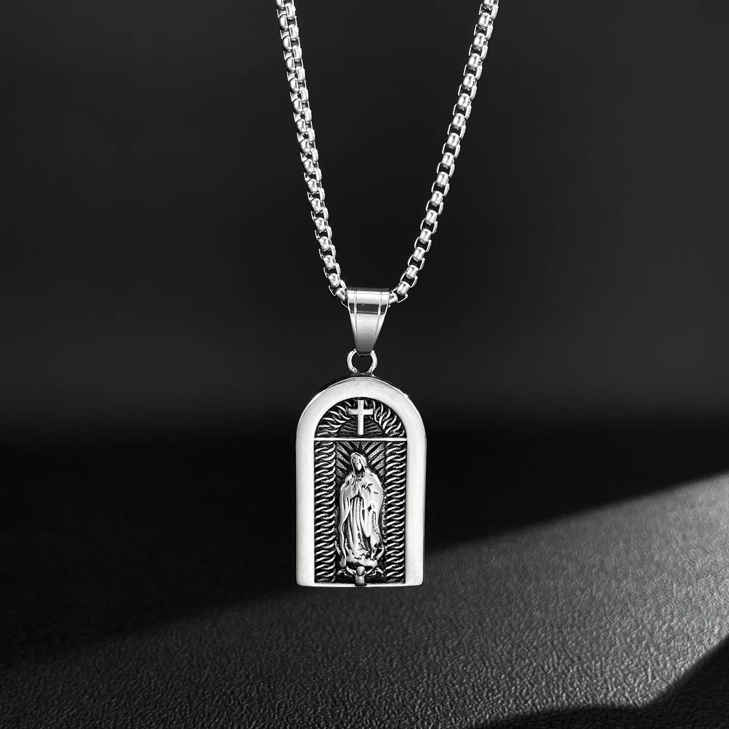Men’s Retro Punk Cross & Geometric Block Pendant Necklace – Stainless Steel Titanium Hip Hop Jewelry