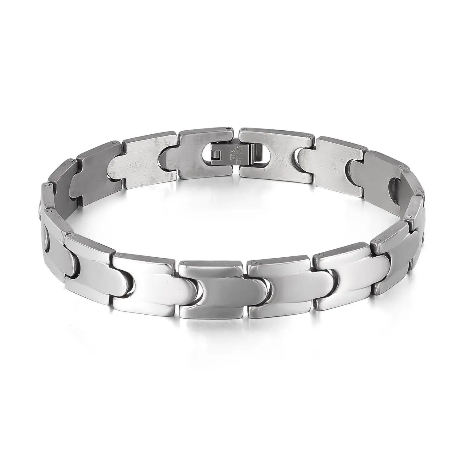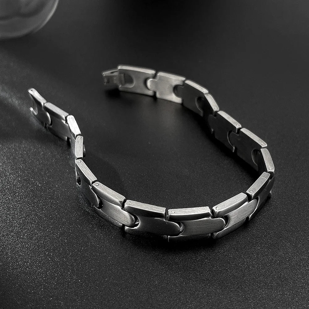 This trendy men’s bracelet features a clean, polished finish and a creative design twist, blending modern masculinity with everyday style. Made from stainless steel and titanium, it offers a smooth, reflective surface and premium feel — perfect for minimalist looks or layered streetwear.