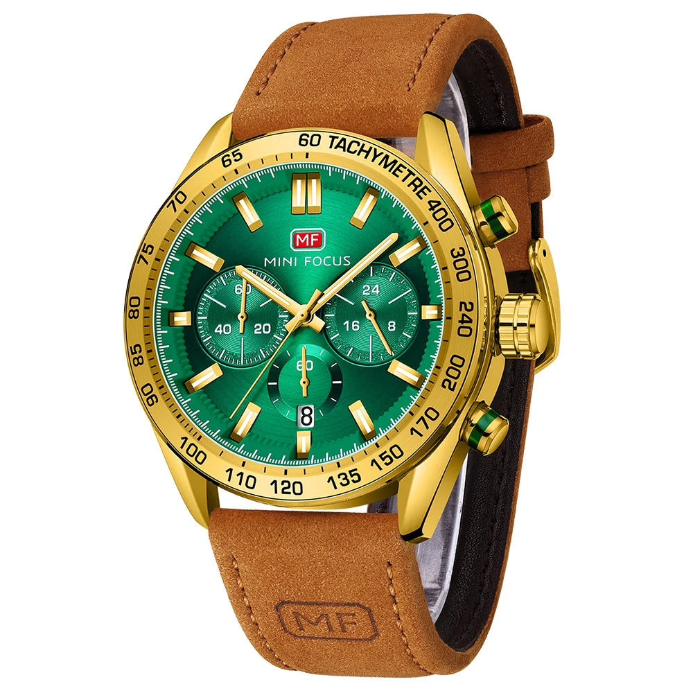 MINIFOCUS Men’s Casual Quartz Watch Genuine Crazy Horse Leather Strap Luminous Waterproof Fashion Timepiece Watch Gift for Him