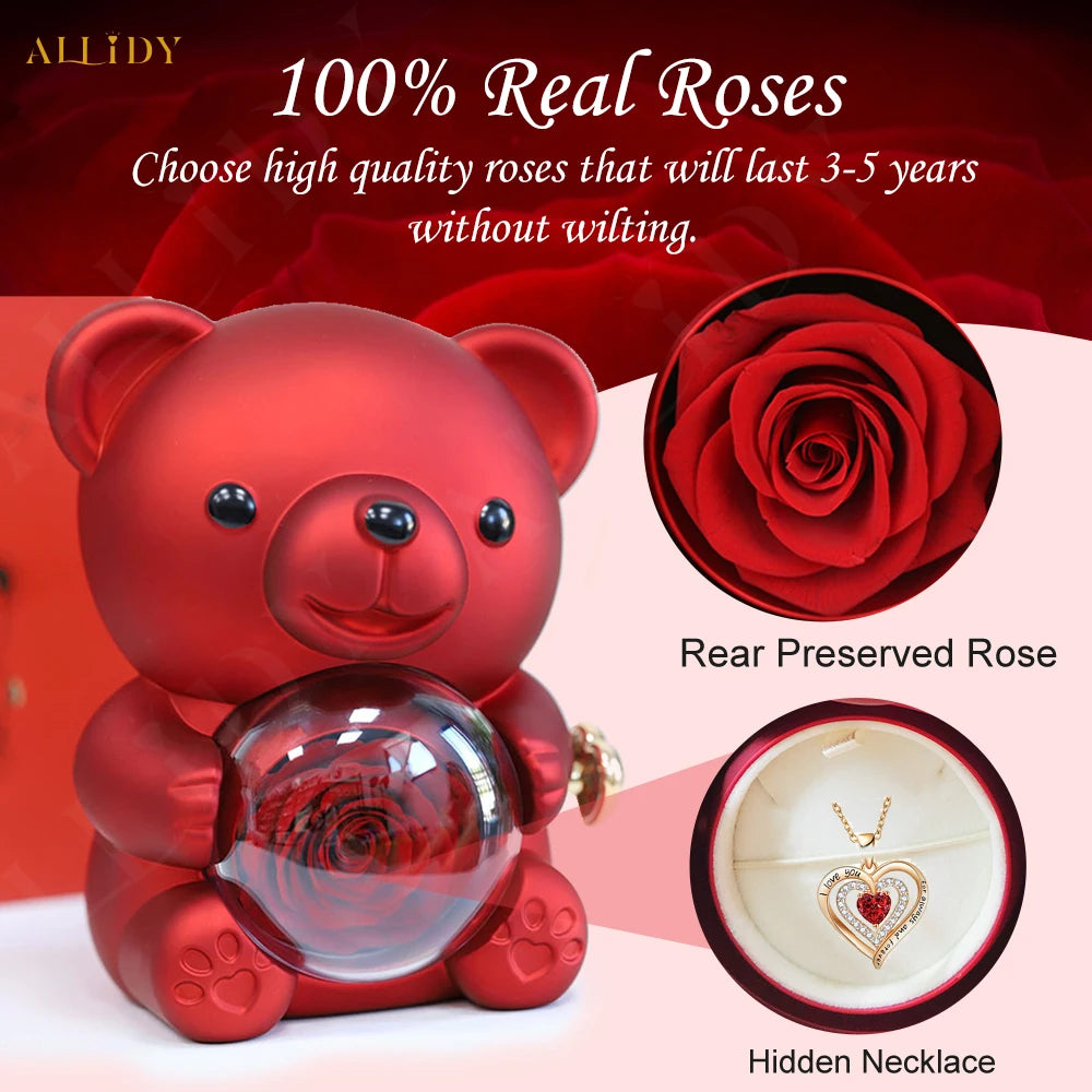 Package Includes: 1 Set (Rose Teddy Bear Jewelry Box + Packing Box + Handbag + Necklace)