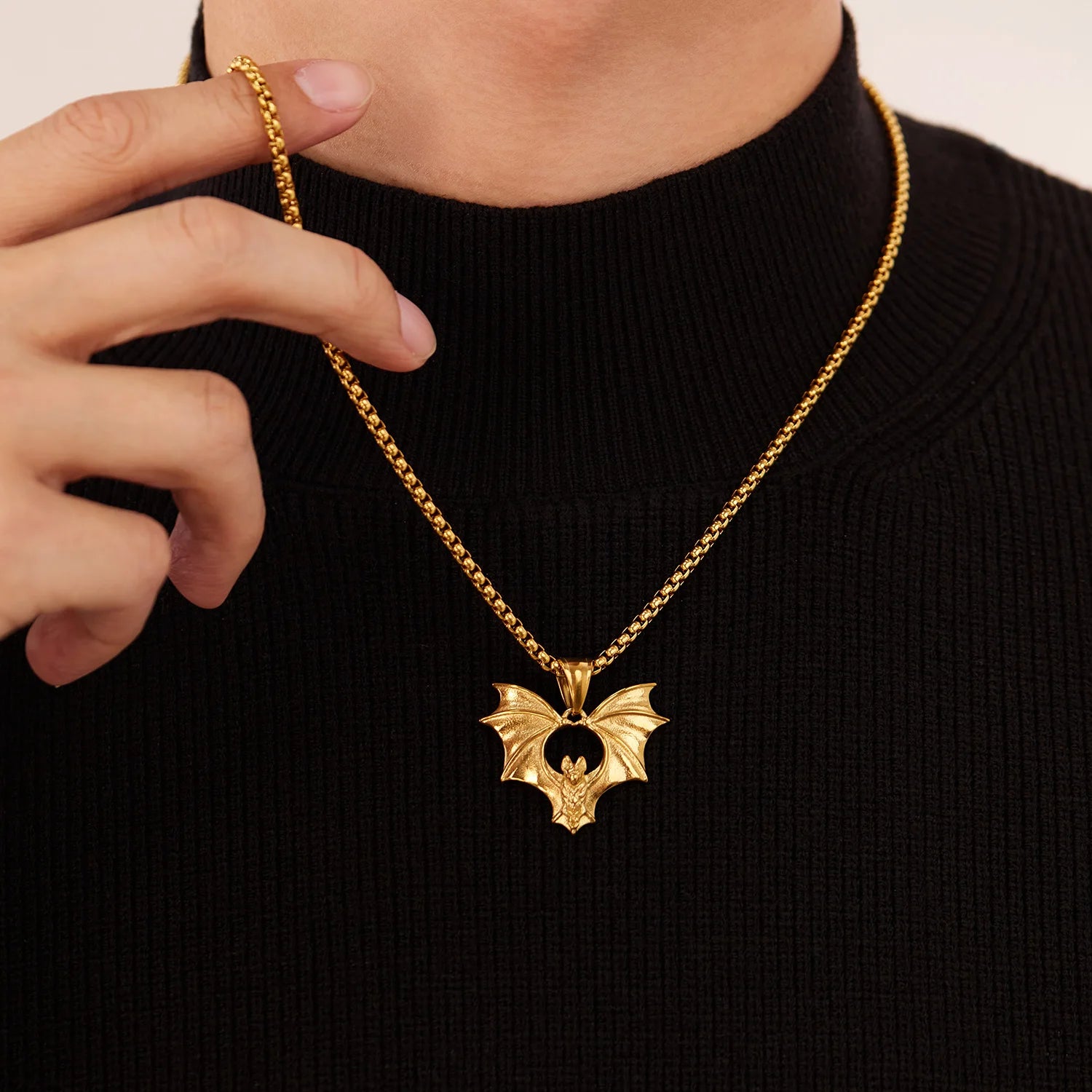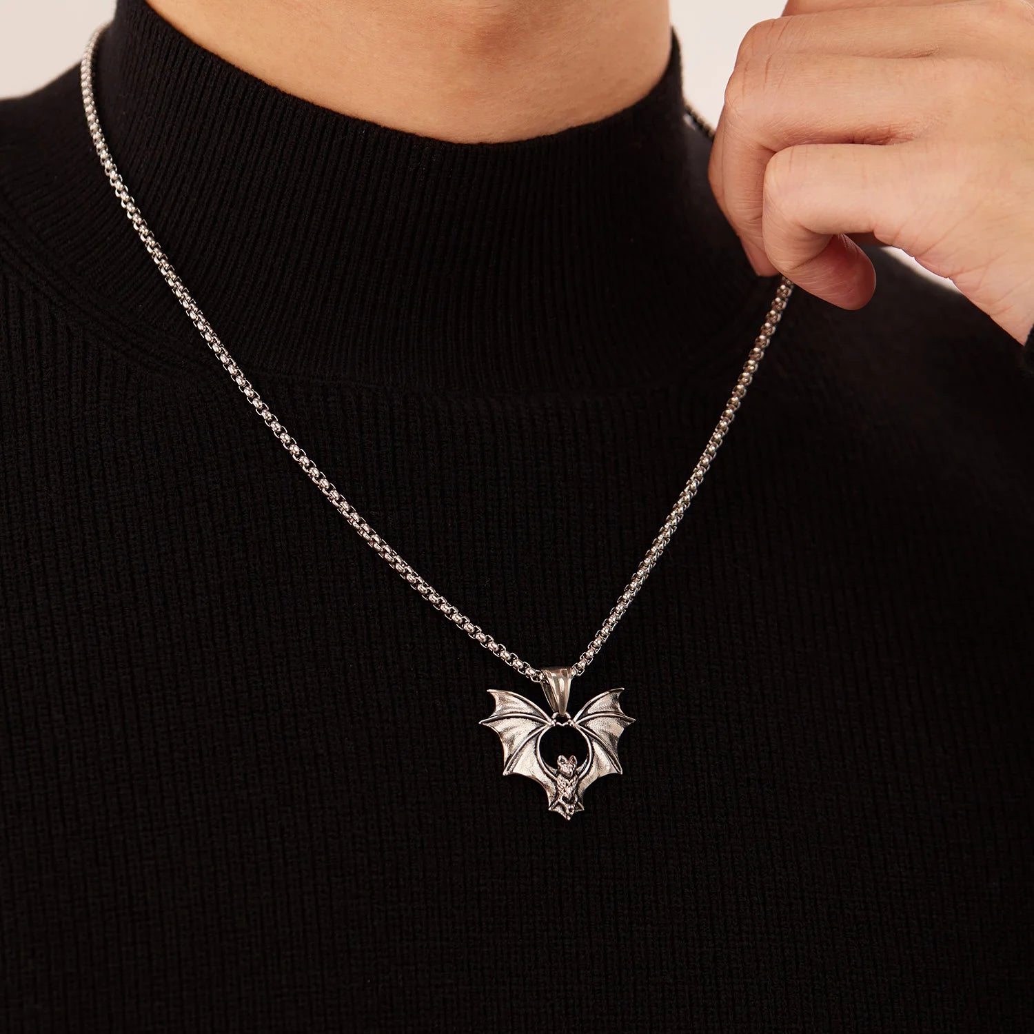 Unleash your inner rebel with this Bat Pendant Necklace, a bold representation of gothic charm and street-style defiance. Crafted in high-quality stainless steel, the pendant features a fierce bat silhouette — a symbol of mystery, power, and transformation.