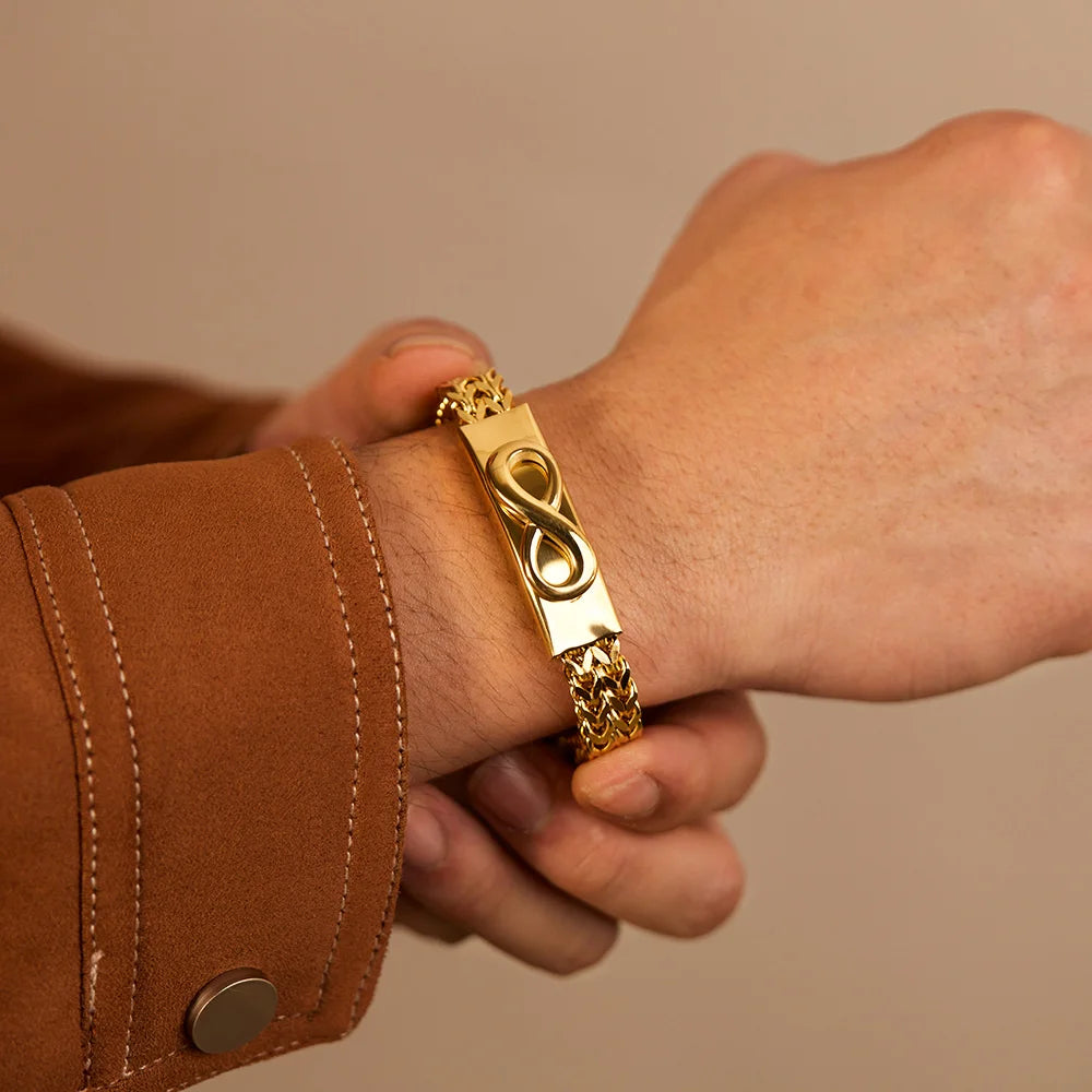 Make a bold statement with this gold-toned stainless steel bracelet for men, designed to fuse vintage attitude with modern edge. Featuring your choice of three symbolic 3D charms—a Tree of Life, Infinity symbol, or Guitar pendant—this bracelet captures meaning and style in one powerful accessory.