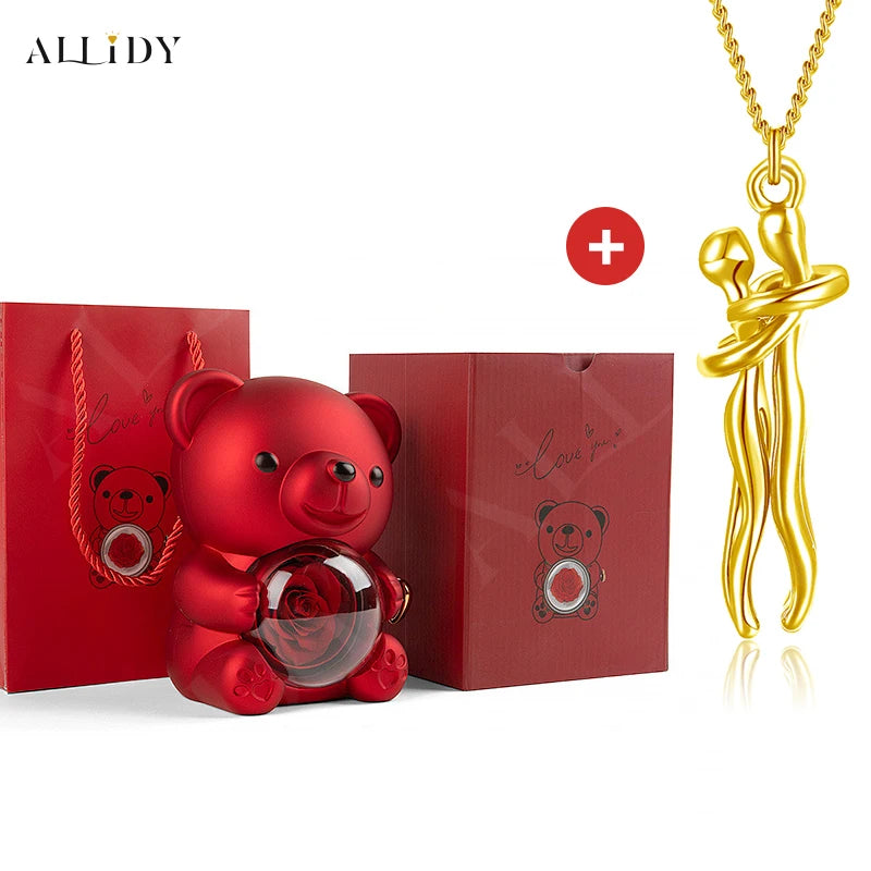 Product Name: Rose Bear Jewelry Box with Couple Hugging Necklace Gift Set