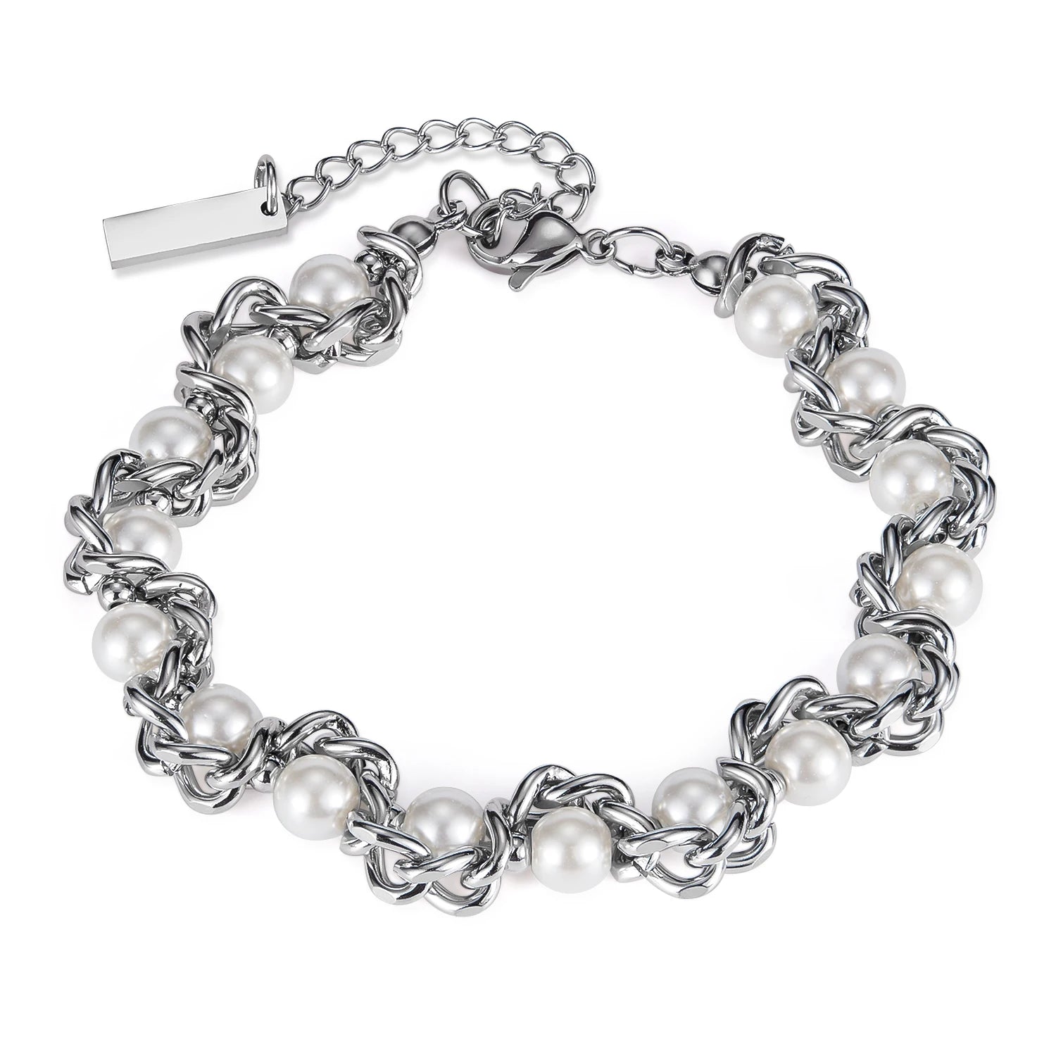 Make a statement with this trendy pearl wrap chain bracelet, crafted with a bold and creative stainless steel design. The unique intertwined structure features luminous imitation pearls wrapped through a stylish chain, blending elegance and street fashion for a modern edge.
