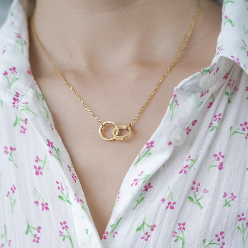 Custom Engraved Name Double Rings Necklace