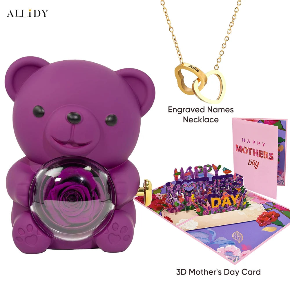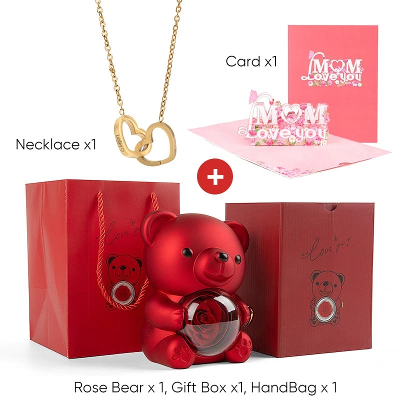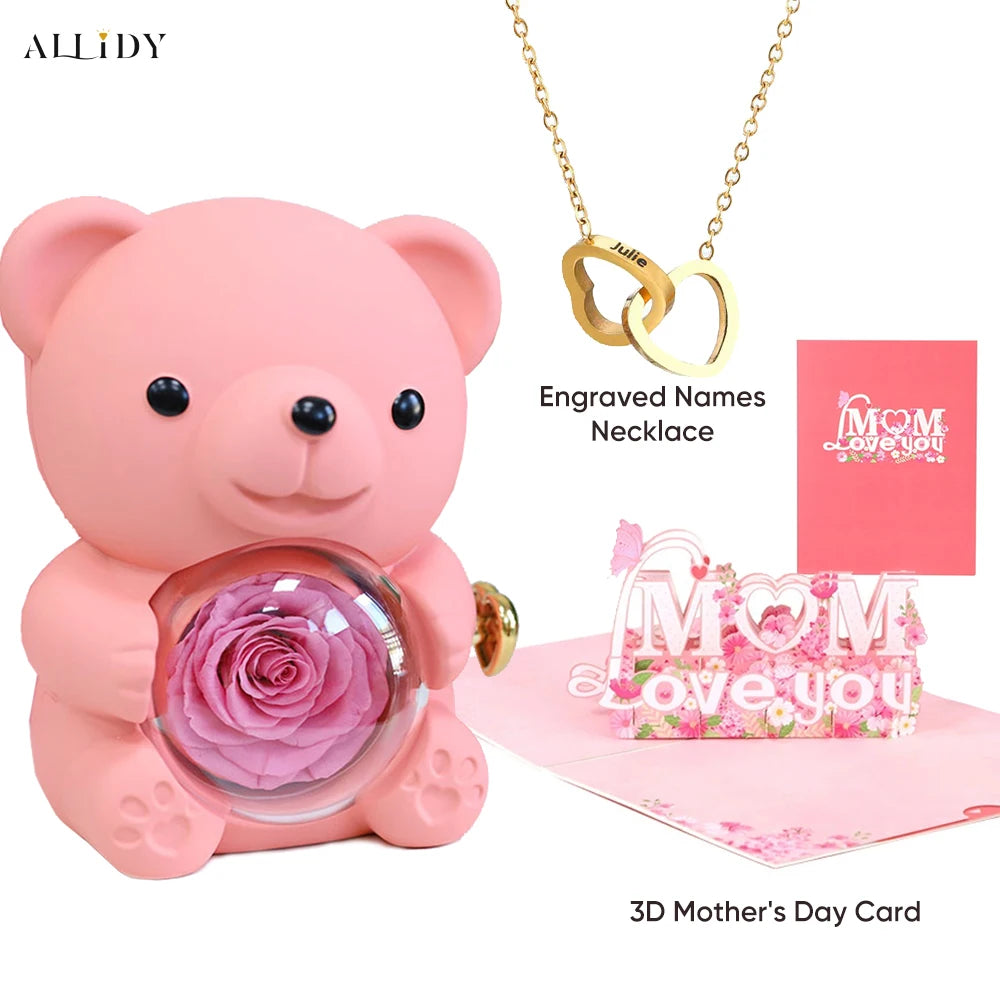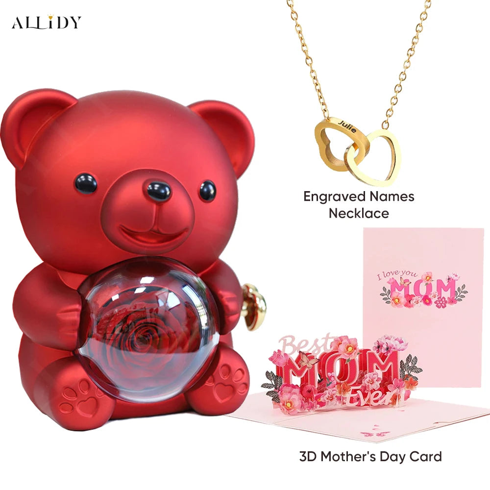 2025 New Beautiful 3D Mother's Day Card Roses Teddy Bear and Necklace Best Personalized Unique Mother’s Day Gifts for Mom