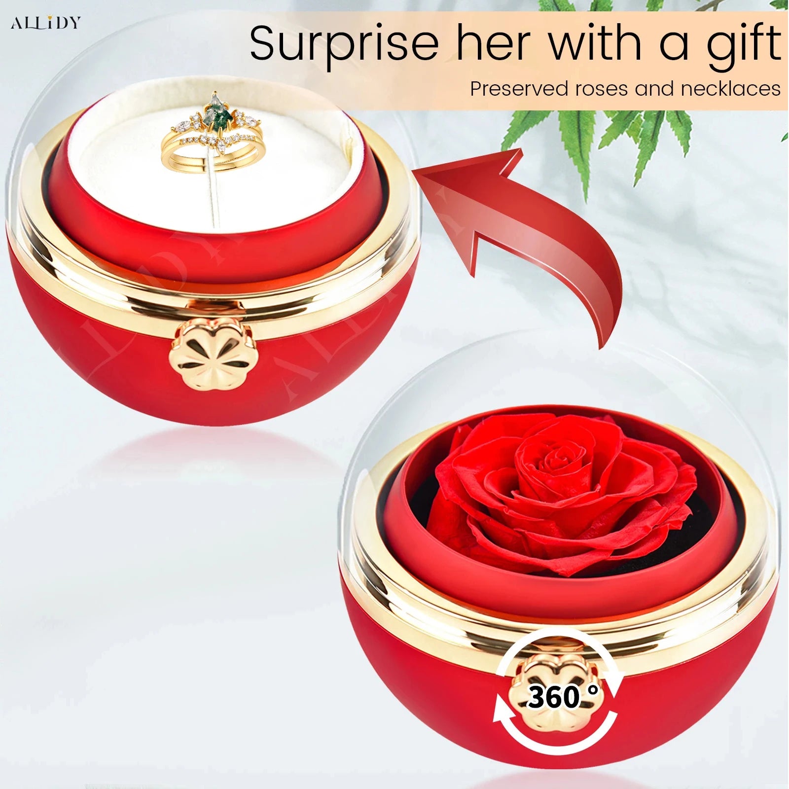 Package1 Includes: 1 Set (Rose Flower Jewelry Box x 1, Packing Box x 1, Handbag x 1, Ring x 1,)
