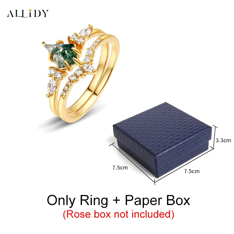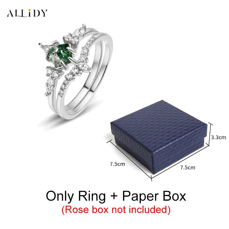 Creative Irregular Natural Green Moss Stone Aquatic Agate Retro Women's Two-Piece Ring With Real Eternal Rose Jewelry Box Set