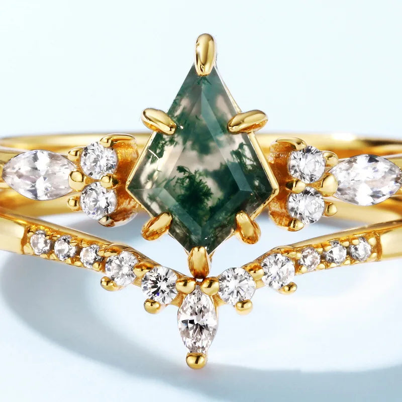 Ring name : Natural green moss stone water grass agate two-piece ring set