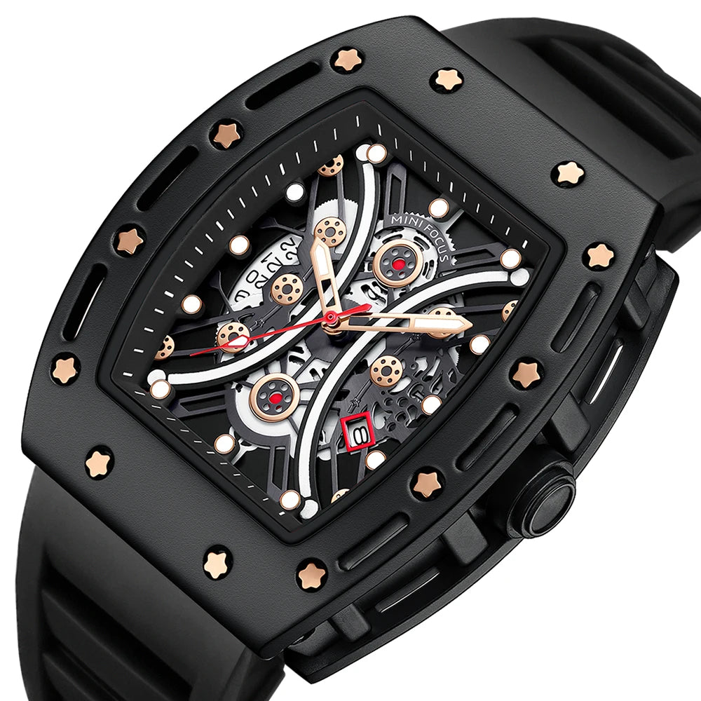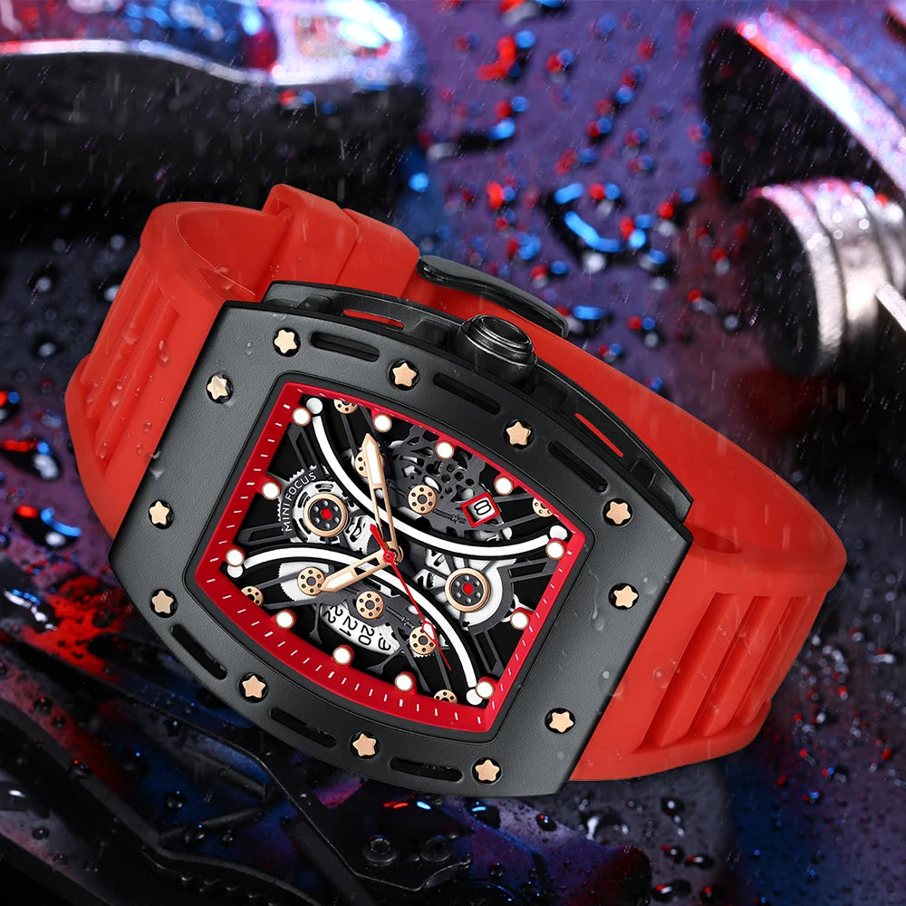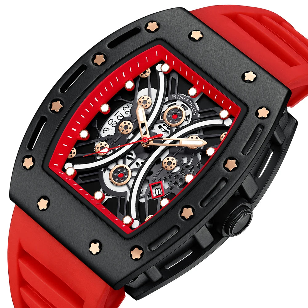 The tonneau case shape adds a touch of elegance to this sporty watch, blending functionality with fashion.