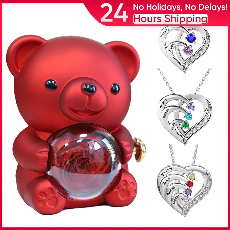 Package2 Includes: (Necklace x1, Rose Bear x1, Package Box x 1, HandBag x 1 )