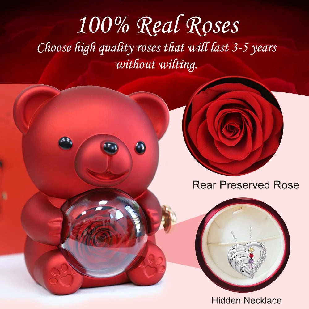 Product Name: Rotating Rose Teddy Bear Jewelry Box with Necklace Set