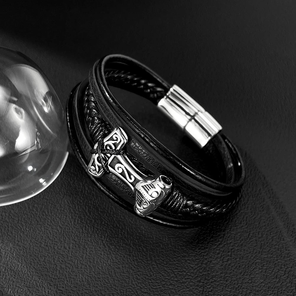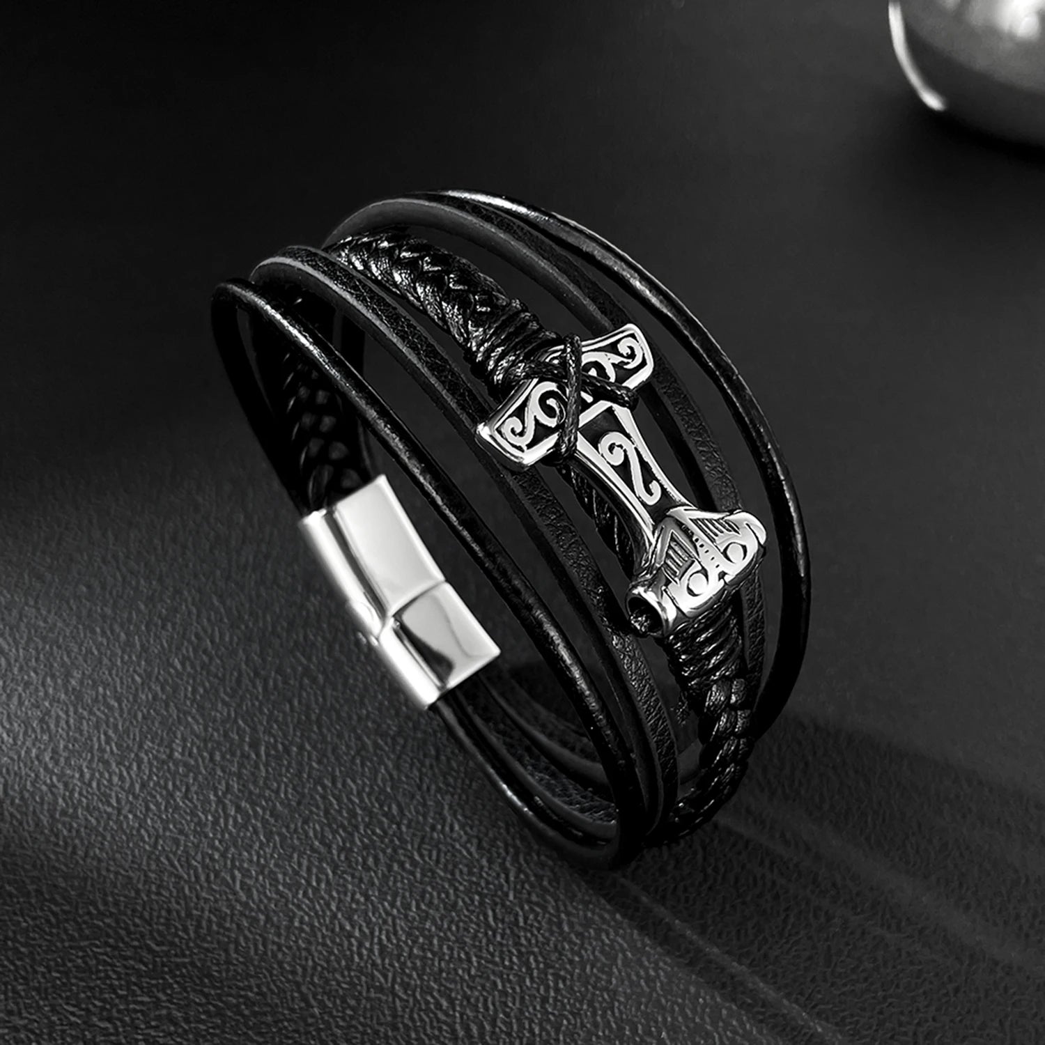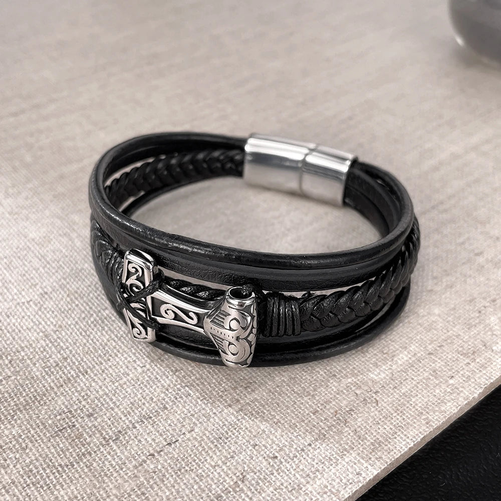 This men’s vintage-style leather bracelet brings together classic European aesthetics with modern geometric design. The multi-layer braided leather delivers depth and character, while stainless steel details add shine and structure. Whether you're going for a retro outfit or casual look with edge, this piece completes your wristwear lineup with ease.
