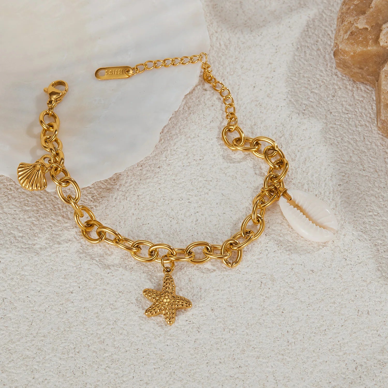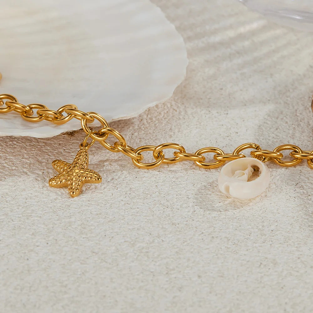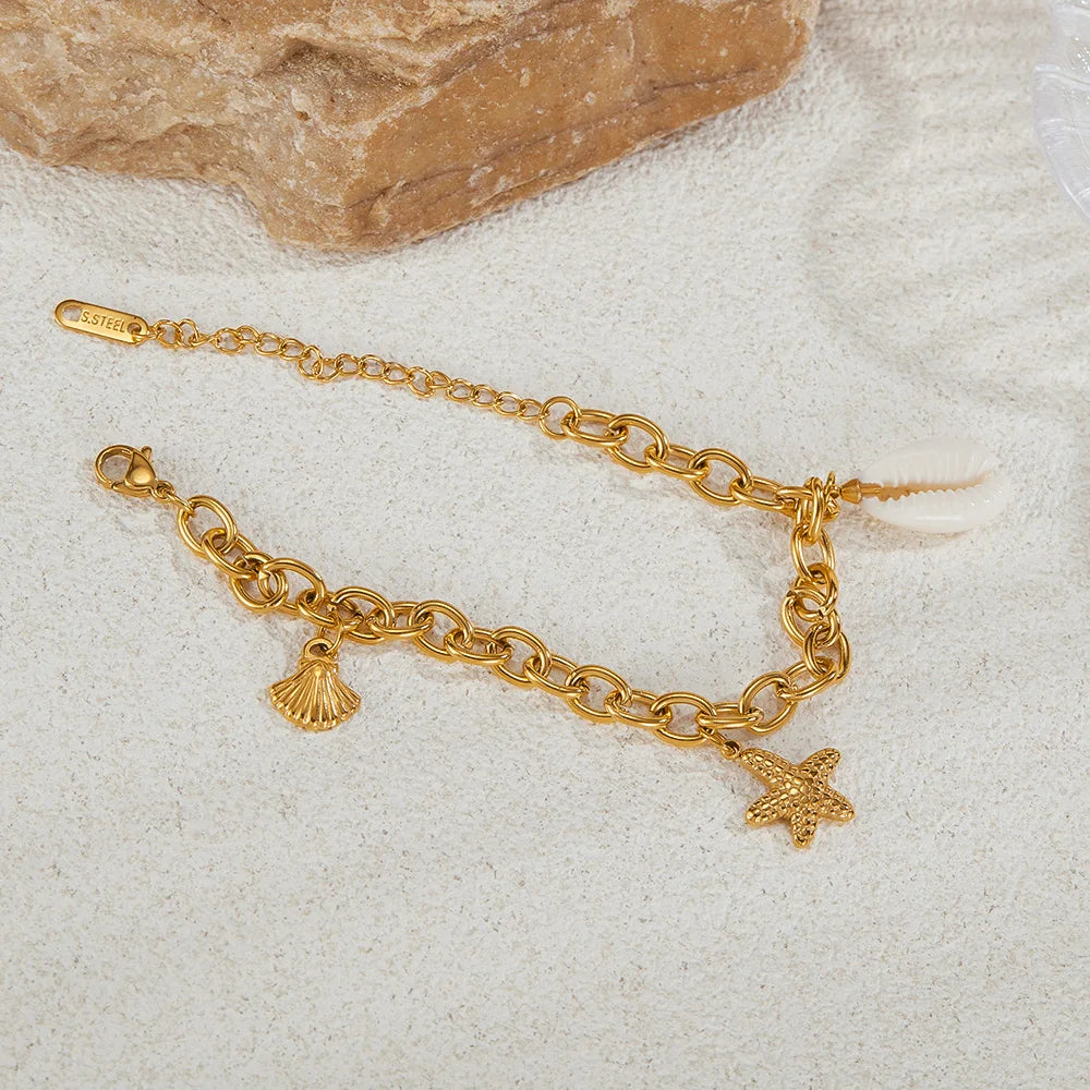 #starfishbracelet #oceanjewelry #shellbracelet #beachstyle #womensbracelet #stainlesssteeljewelry #titaniumsteel #vacationaccessory #giftforher #summerjewelry