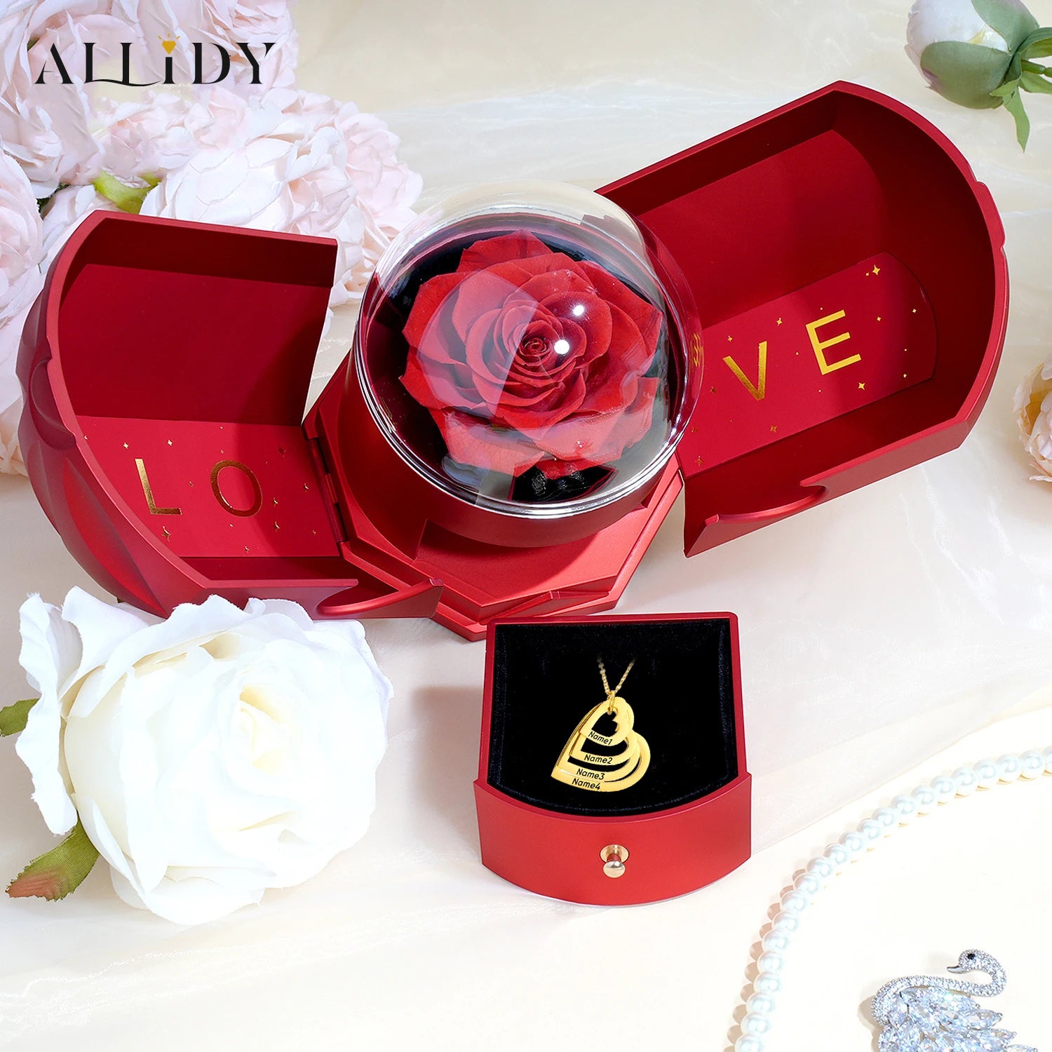 Personalized Engraved Name Necklace and Heart Pendant Necklace Gift Set with Rose Jewelry Box – The Perfect Gift for Christmas, New Year, Thanksgiving, Mother's Day, Valentine's Day, Women's Day, Goddess Day, Birthdays, Proposals, Confessions, Weddings, Wedding Anniversaries, or Any Special Occasion.