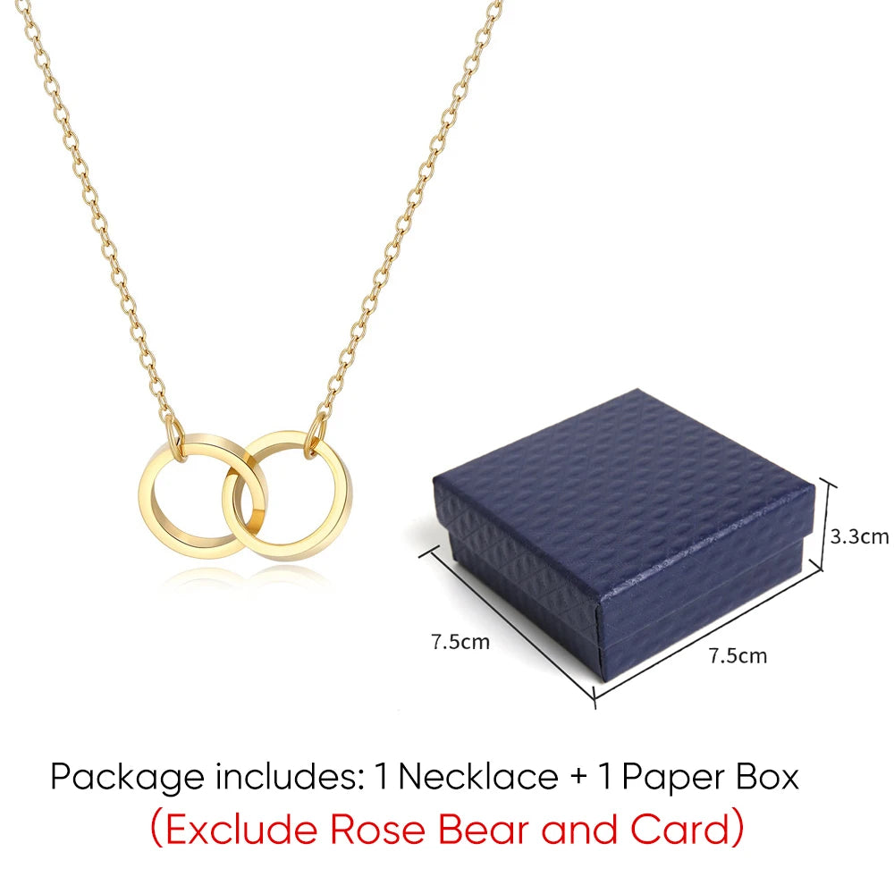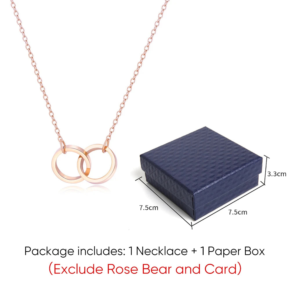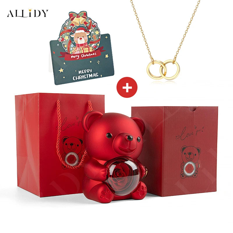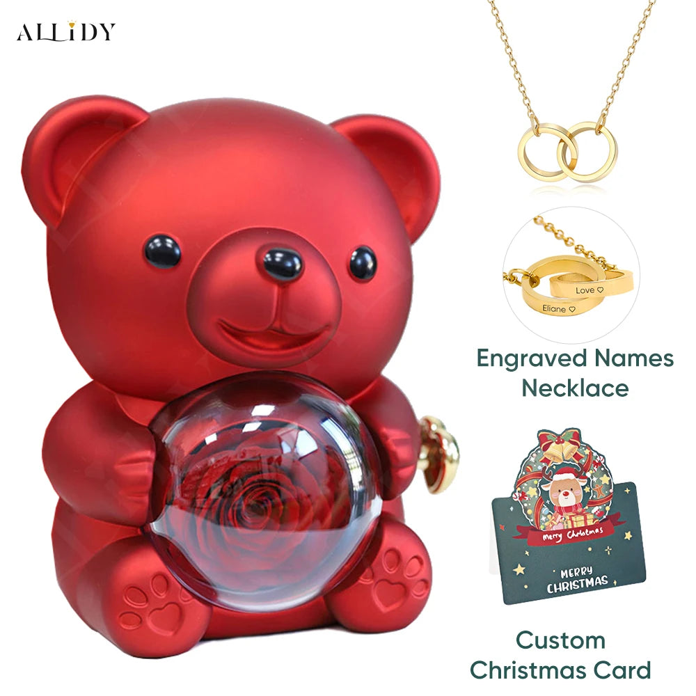 Christmas New Year Gift Idea Rose Bear Jewelry Box with Custom Engraved Name Necklace Holiday Card Valentine's Day Gift Women