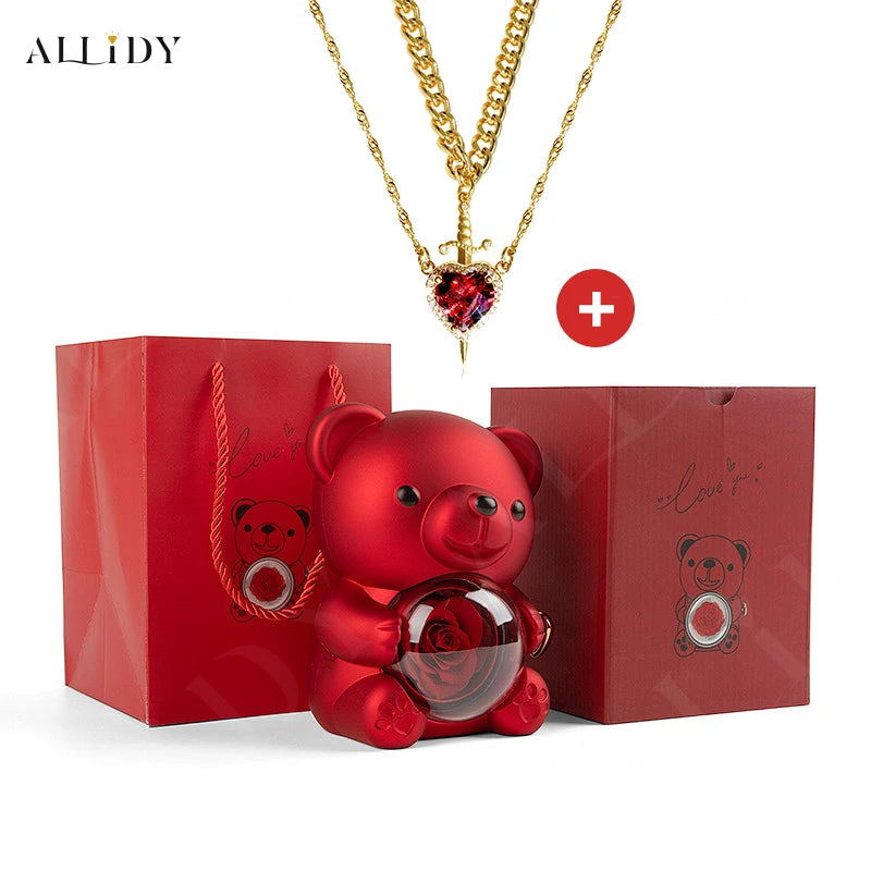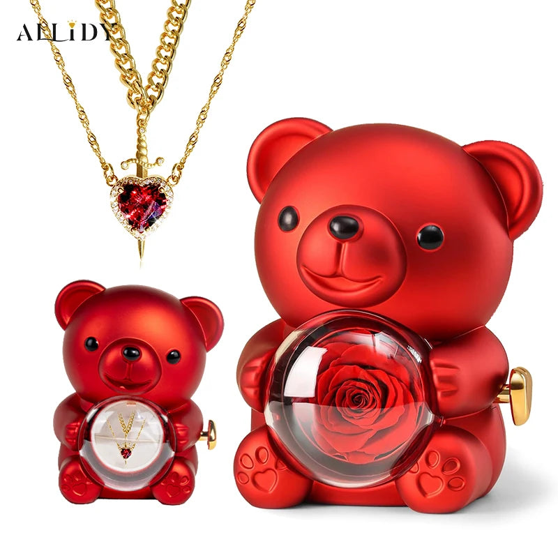Package Includes: (Necklace x1, Rose Bear x1, Package Box x 1, HandBag x 1 )
